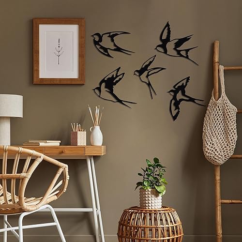 Décoration murale en métal, hirondelles, décoration de salon, panneau mural, art mural en métal, décoration intérieure, suspension intérieure et extérieure (lot de 5)