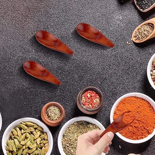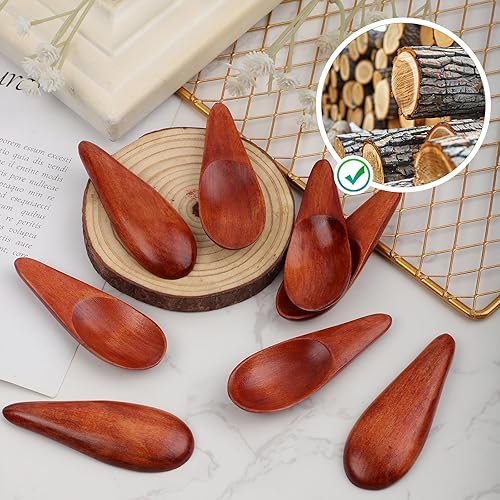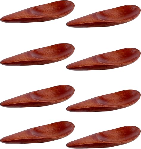 Lot de 8 Mini Cuillères à Condiments, 7 x 2,5 cm Petites Cuillères en Bois Faites à la Main Cuillères à Épices en Bois Petites Cuillères pour Sel Sucre Épices Sauces Miel Moutarde (Marron)