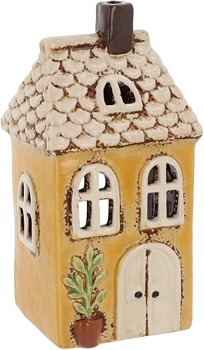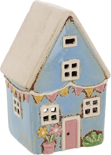 Shudehill Giftware Village Pottery Photophore en céramique Motif Maison Florale Gris foncé