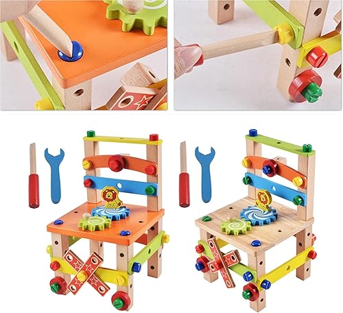 freneci Chaise Multifonctionnelle En Bois pour Enfant Bricolage Montessori Jouet Combinaison Chaise Cadeau - Style1