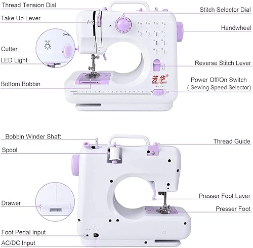 Machine à coudre, 12 points, double fil 2 vitesses, table d'extension, Megle-505A ( Fanghua )
