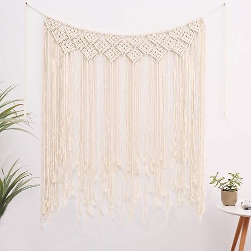 Tapisserie murale en macramé faite à la main en coton tissé - Décoration murale bohème - Pour salon, chambre à coucher, mariage, appartement - 115 x 100 cm