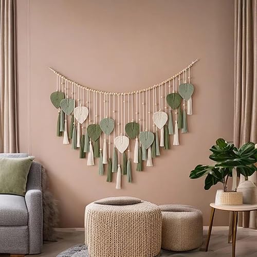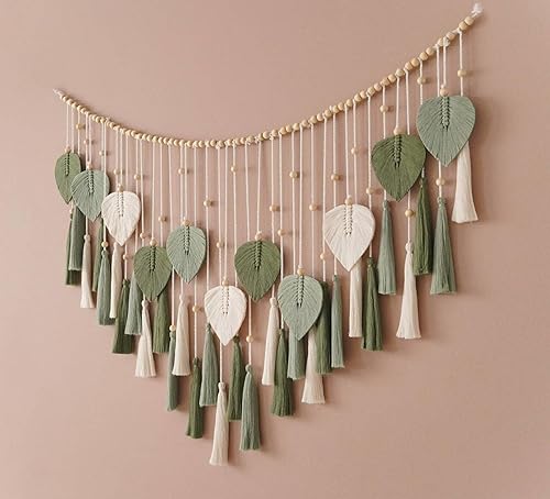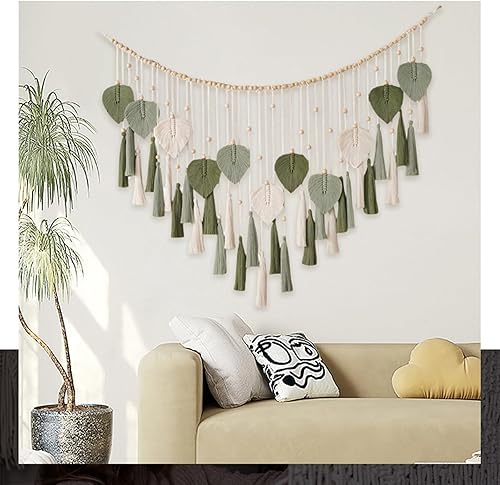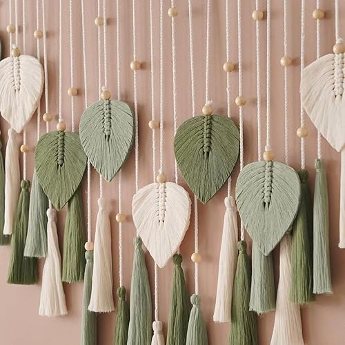 ANAZOZ Tenture murale en macramé - Style bohème - Rideau de porte et de fenêtre - 50 cm de large - En coton tissé uni - Avec pompons