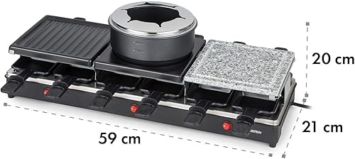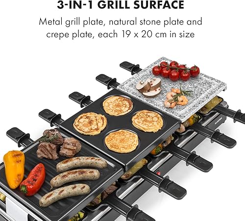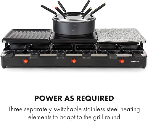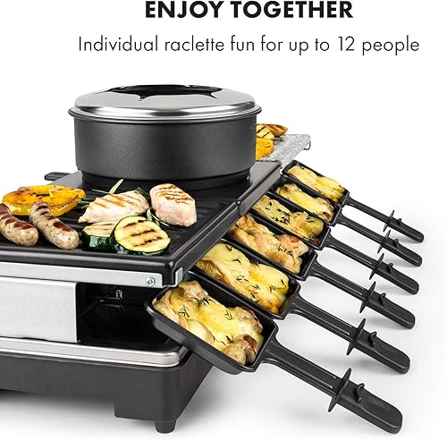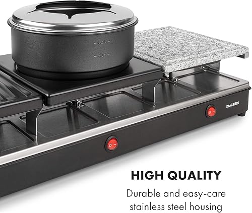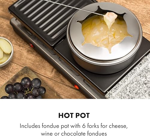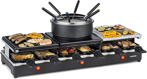 KLARSTEIN Fonduelette XL - Gril raclette et fondue 3 en 1, 1650 W, gril 3 en 1: plaque métal/pierre naturelle/crêpes, éléments chauffants en inox, jusqu'à 12 pers., revêtement antiadhésif - noir