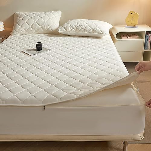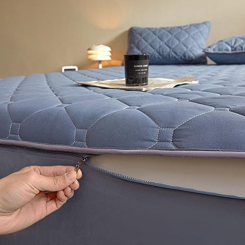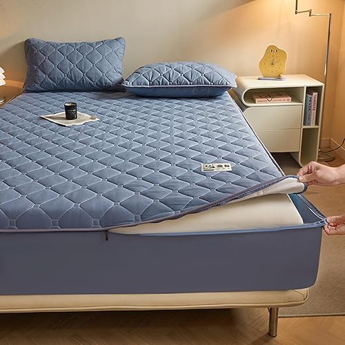 Protège-matelas matelassé personnalisable avec fermeture éclair - Drap-housse entièrement amovible et lavable - Taille simple/double/king size - 90 x 200 + 30 cm - Gris