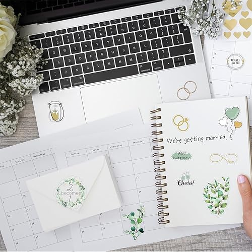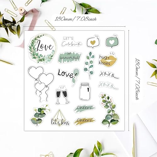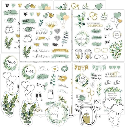 MKVZIYE Things of Happiness Stickers Livre d'or de mariage |8 autocollants album photo de mariage | Vintage Sticker pour scrapbook mairie | Décoration de mariage vert eucalyptus