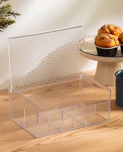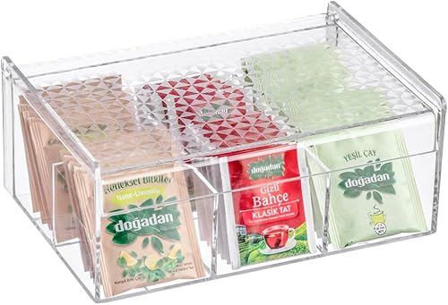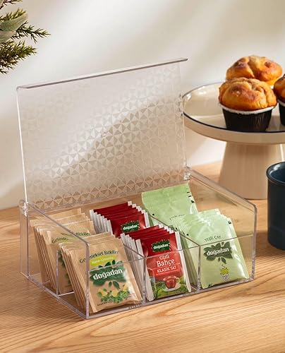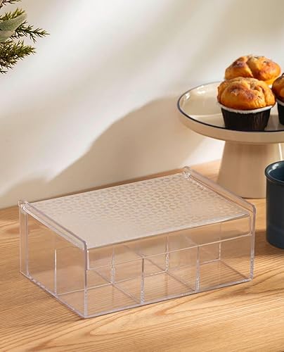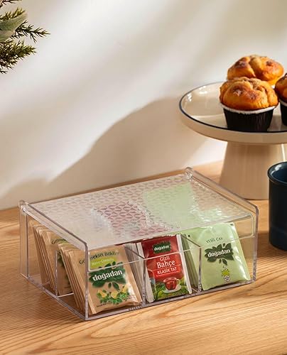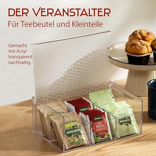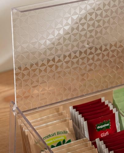 Verona Creative Life Boîte à Thé Organisateur Polyvalent Acrylique Transparent - Motif Géométrique Élégant, Pratique pour Rangement Cuisine, Salle de Bain, Bijoux, Sachets - Gain de Place