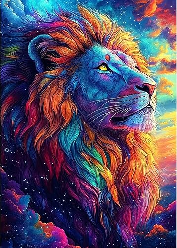 DAERLE Diamond Painting Lion à la crinière colorée, Peinture Diamant Lion, Diamant Painting Kit, Broderie Diamant Kit Complet Convient Pour La Décoration Murale à La Maison 30x40cm