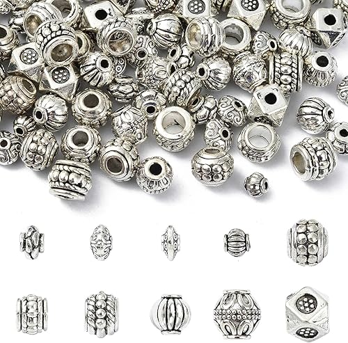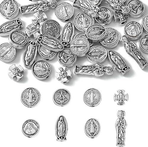 UR URLIFEHALL Lot de 80 perles intercalaires religieuses en argent tibétain - 8 styles - Fatima - Éléphant - Bouddha - Fleurs - Bijoux DIY - Artisanat