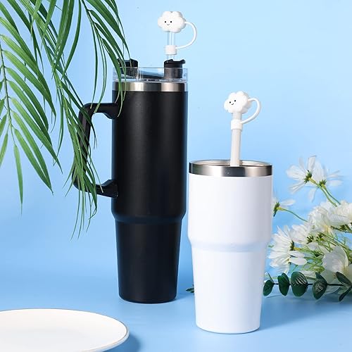 6 Pièces de Bouchons Anti-Fuites en Silicone Compatibles avec Stanley, Couvercles de Paille Réutilisables en Forme de Nuage Blanc Silicone Pailles Couvre pour Gobelet Stanley 40 oz 30 oz