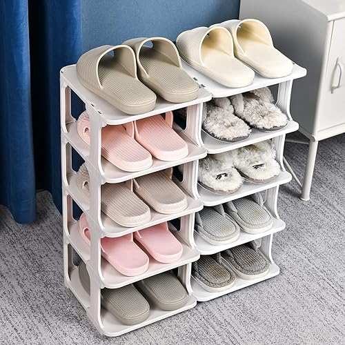 Cynamus Étagère À Chaussures, Étagère À Chaussures Verticale, BoÎte À Chaussures, ÉtagÈre À Chaussures en Plastique, Montage Rapide, Empilable, pour Salon, Entrée, Couloir, Chambre (Blanche)