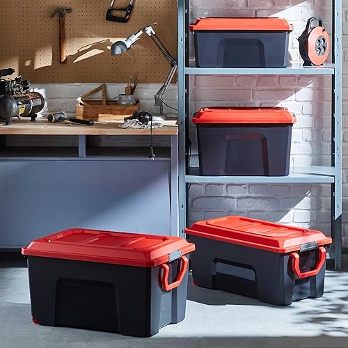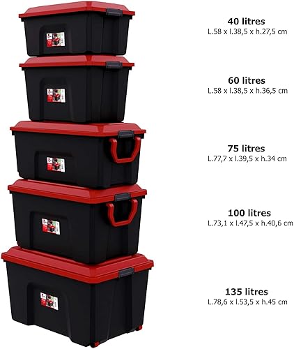 Sundis Locker, lot de 3 malles de rangement en plastique recyclé 75 litres, avec couvercle clipsable, superposables et empilables, idéales pour l'atelier, le transport, le garage, le bricolage