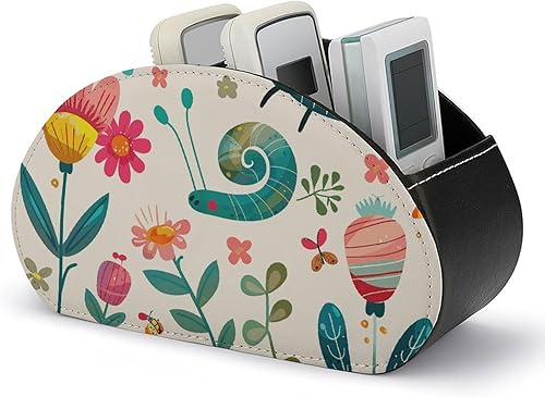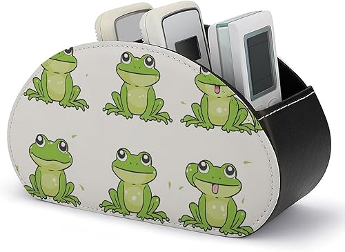 QSMGHKD Support de télécommande en cuir synthétique imprimé petite grenouille verte avec 5 compartiments, boîte de rangement de bureau pour fournitures de bureau, pinceaux de maquillage, accessoires