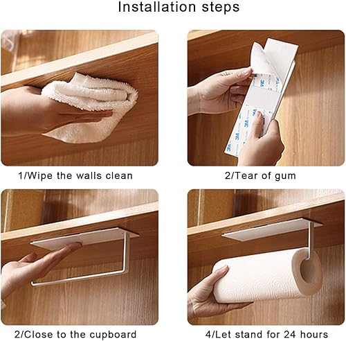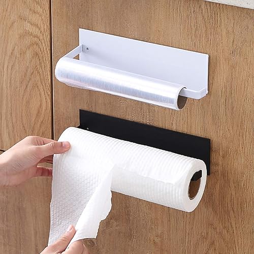 Jinlaili Porte Essuie-Tout 25cm Mural, Dérouleur Cuisine en Métal Auto-Adhésif, Support Papier Sans Perçage (Blanc)