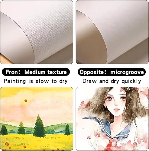 DEARBAG 60 Feuilles Papier Aquarelle, Aquarelle Papier Dessin, 300g/m² Papier Aquarelle Blanc Coton Watercolor Paper Feuille Aquarelle pour Aquarelles Acryliques Gouaches (12,7 x 17,8 cm)