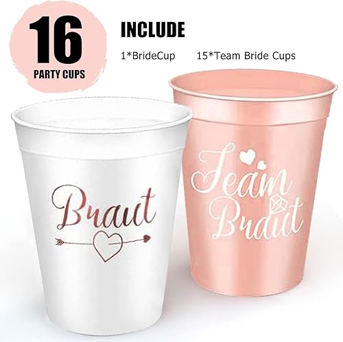 HuaMuDM 16 Pieces Bachelorette Party Cups Bride Tribe Tasses Cups Team Bride et Bride,Bachelorette Party Cups, Coupes de Bride et Bride Tribe