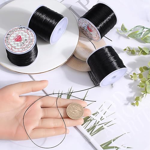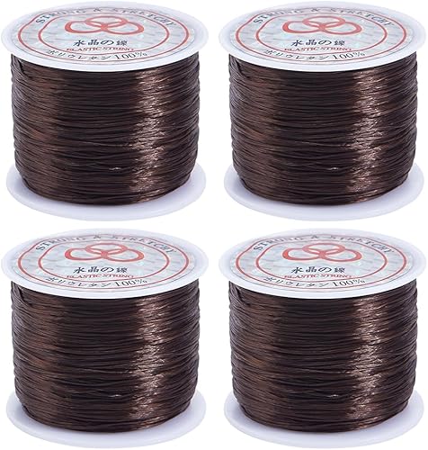 SUNNYCLUE 240 m 4 rouleaux de Cordon de Perles Élastiques de 0.8 mm Marron Extensible pour Bracelet, Fils de Cristal, Perles D'Argile Élasthanne, Cordons de Perles de Rocaille pour Bracelets, Colliers