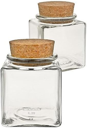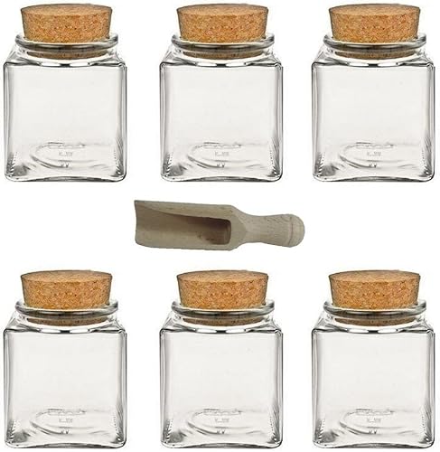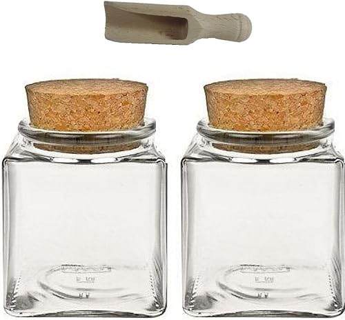 Viva Haushaltswaren - 2 bocaux à épices carrés de 200 ML, en Verre avec Bouchon en liège, utilisable comme boîte à épices et boîte de Conservation pour épices, sel, etc. (avec Petite Pelle en Bois de