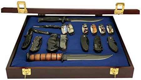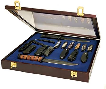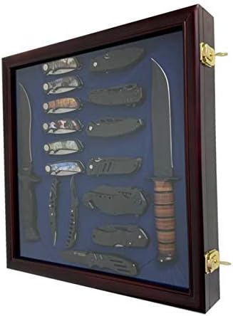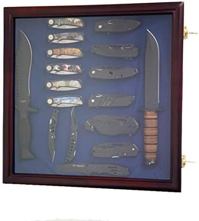DECOMIL - Vitrine à couteaux de poche - Porte verrouillable en verre - Finition cerise - Bois massif - Plexiglas - Montage mural - Brun Rougeâtre