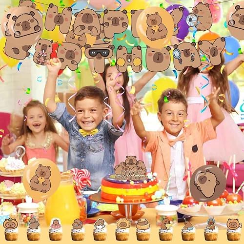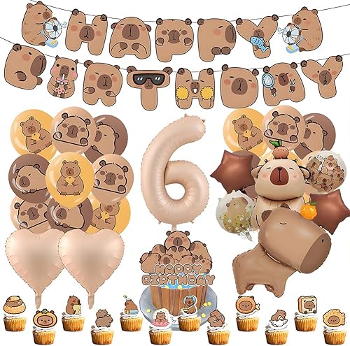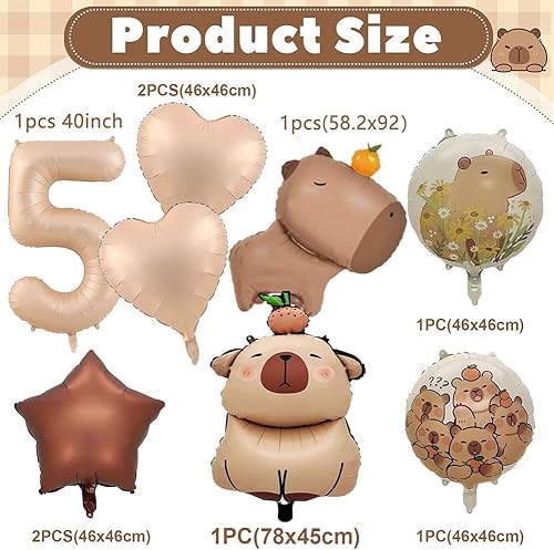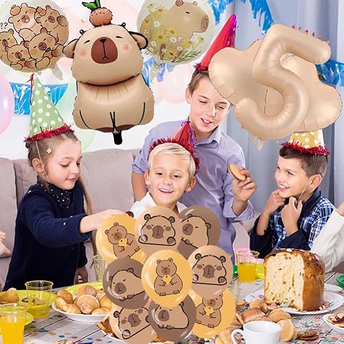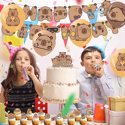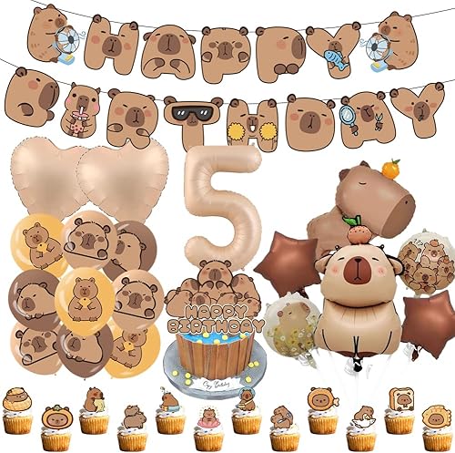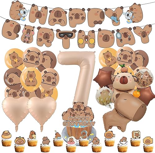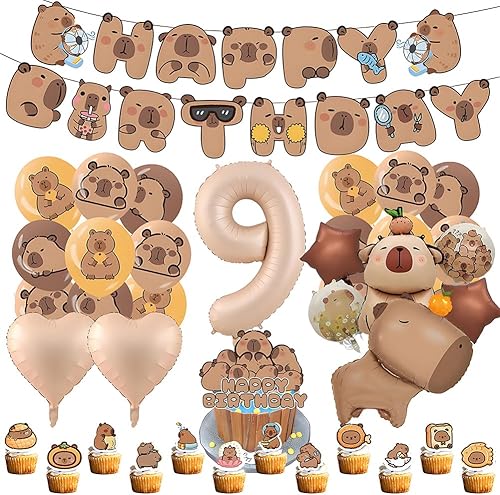 Capybara Décorations d'Anniversaire, 9 Ans Capybara Party Supplies Décoration Set 40 pièces, Comprend Bannières Ballons Cake Topper de Gâteau, Décoration d'Anniversaire pour Enfants
