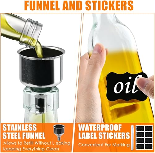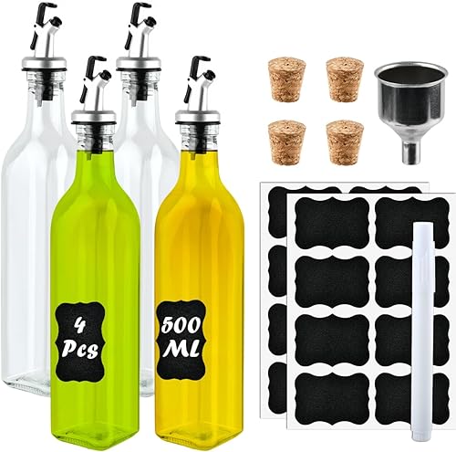 OctBird 4Set 500ML Distributeur D'huile d'olive en Verre avec Etiquettes Entonnoir Bouchons,Bouteilles D'huile,Distributeur de Vinaigre D'huile Bouteilles pour Verser l'huile pour Cuisine Barbecu