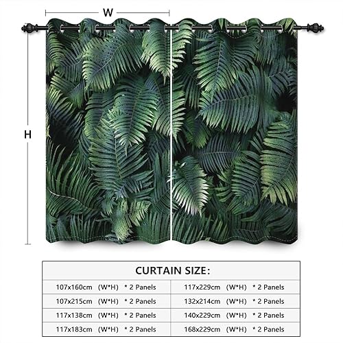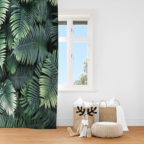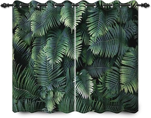 YONGFOTO 117x138cm Feuilles Rideau Windows, Luxuriant Forêt Tropicale Feuilles Plantes à Griffes Feuilles Minces Décor pour Cuisine Salon Chambre Ensemble à la Maison, 2 Panneaux Rideau Tentures