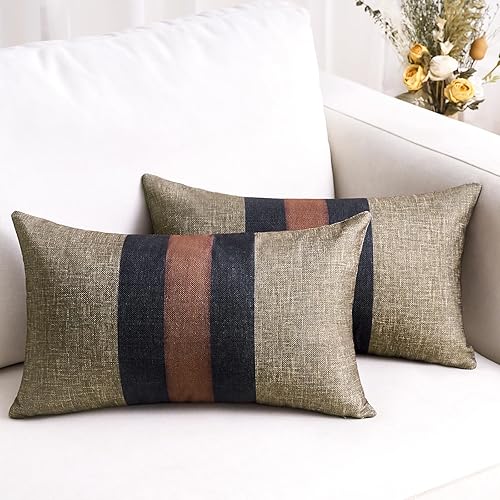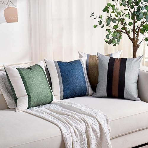 Housses de Coussin de Canapé 40x40 cm Gris et Noir Rayé Patchwork Luxe Moderne Carré Doux et Confortable Taie d'oreiller Décor pour Siège Chambre Salon Décor Maison, Lot de 2