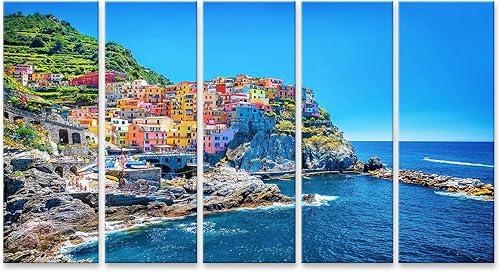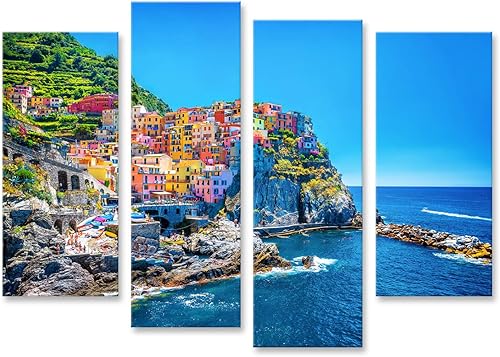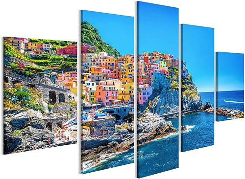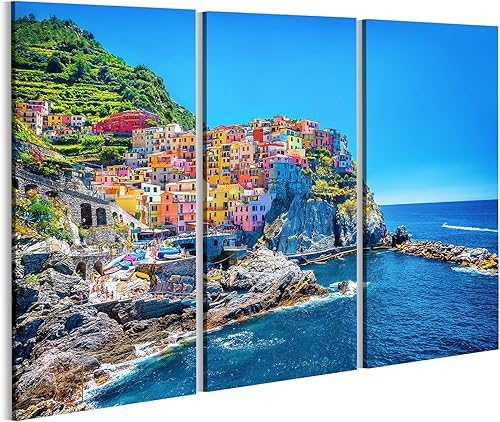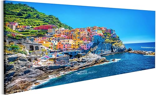 Tableau, Tableaux sur toile beau paysage urbain coloré sur les montagnes sur méditerranée cinque terre europe Poster, Impression, Cadeau MYW