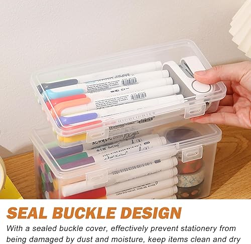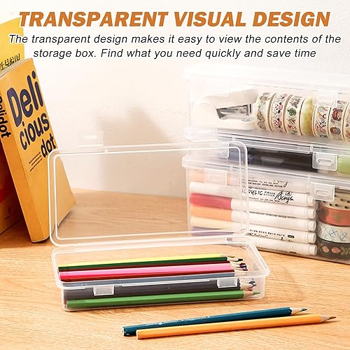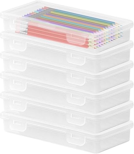SPORWAY Lot de 6 boîtes de rangement rectangulaires en plastique de 19 x 9,5 x 3 cm : organisateur de stylos, boîte à crayons avec couvercle, grande trousse à crayons, pour fournitures d'art