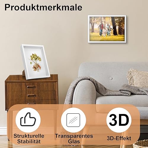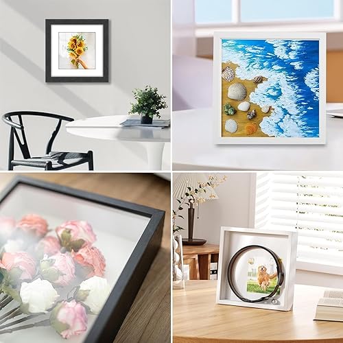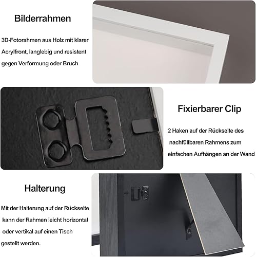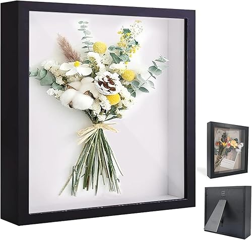 YUNXCNA Cadre Photo 3D, Cadre Photo Profond à Remplir 20 x 25 cm, avec Plaque Acrylique Transparente, Cadre Objet 3D Profond 3cm, Cadre Stéréoscopique Carré, Décoration Murale Stéréoscopique, Noir
