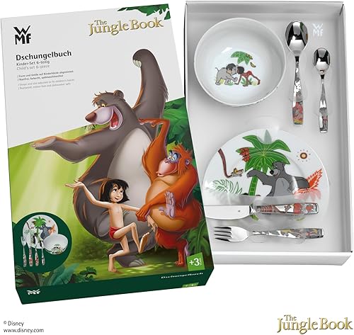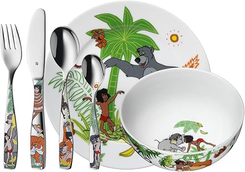 WMF Collection Le Livre de la Jungle, Set de 6 couverts de table pour enfants, Inox 18/10 Cromargan, Porcelaine, Adapté aux enfants de 3 ans et plus, Ludique, Compatible lave-vaisselle 1283309964