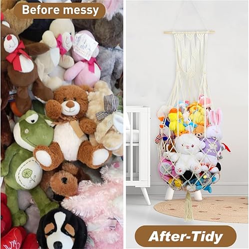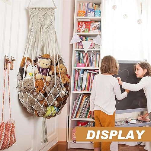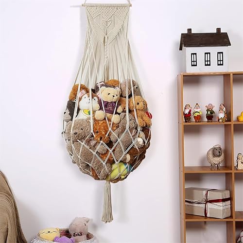Filet de rangement pour peluches, style bohème, macramé, filet pour peluches, jouets, hamac, organiseur pour chambre à coucher