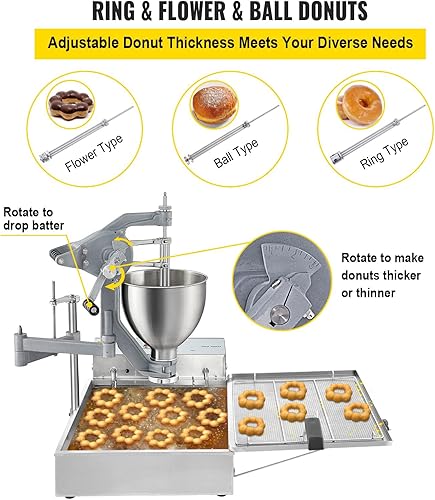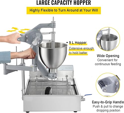 Friteuse à Beignets 3000 W, Mini Machine à Beignets Commerciale Manuelle, capacité de 9 L, friteuse à Beignets Commerciale, 3 moules à Beignets, Machine à Beignets, épaisseur régla