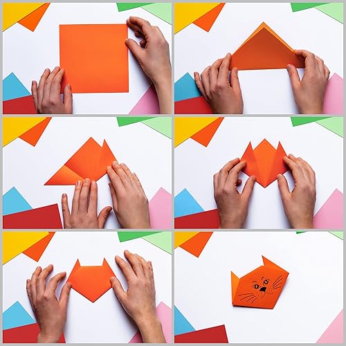 BELLE VOUS 1100 Feuilles Papier Origami Double Face - Feuille Carrée de 15 x 15 cm - 10 Couleurs Vives - Feuille Origami Facile à Plier pour Enfants et Adultes - Projets de Bricolage et Artisanat