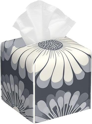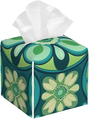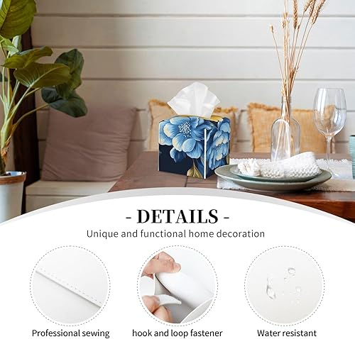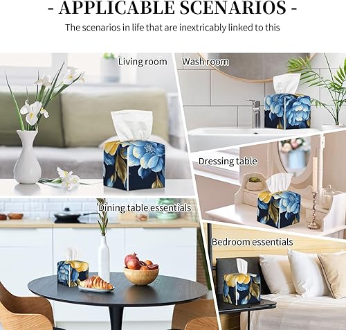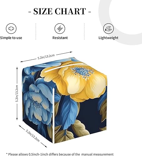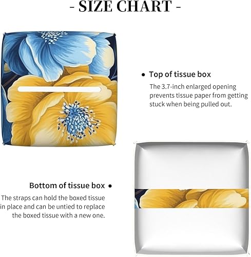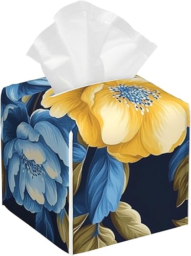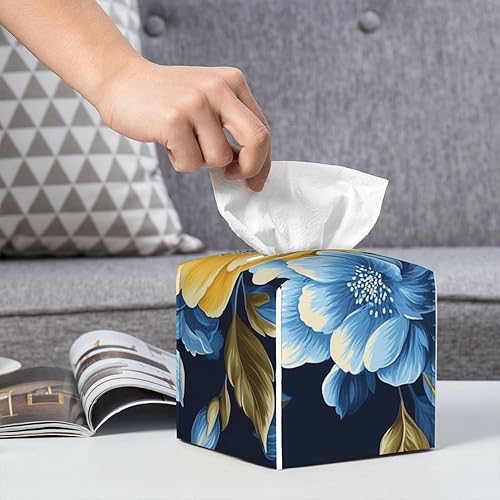 Housse de boîte à mouchoirs carrée en cuir à fleurs jaunes et bleues, décoration de chambre pour salle de bain, cuisine, bureau, tables de nuit