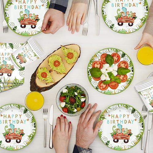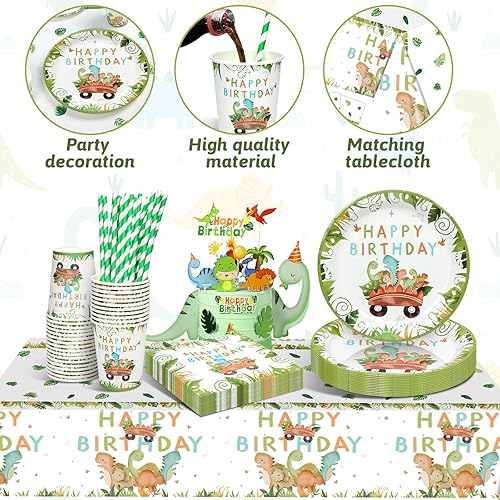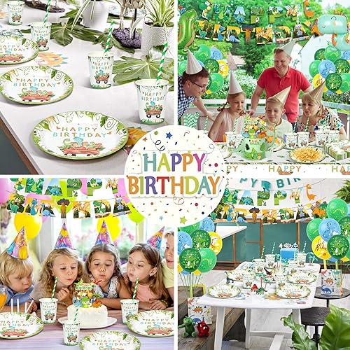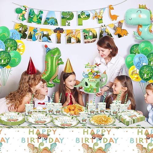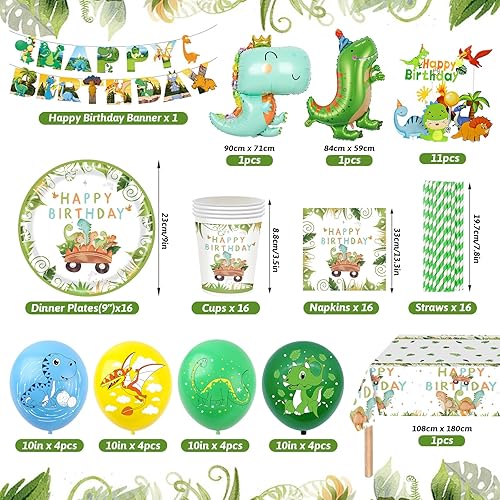 YIMAKJ Vaisselle Dinosaure pour Anniversaire - 89 Pcs avec Assiettes, Bannière, Serviettes et Décorations - Fournitures de Fête pour 16 Invités
