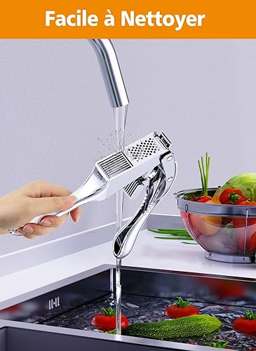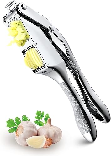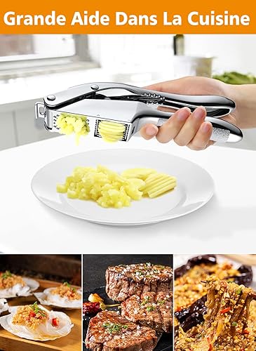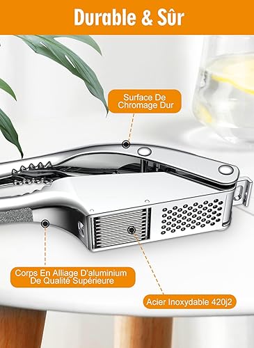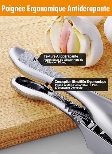 CIRYCASE Presse Ail Premium en Acier Inoxydable, Ecrase Ail durable 2 en 1 avec Poignée Ergonomique Antidérapante, Presse-Ail Inox Crochet de Suspension, Antirouille et Super Facile à Utiliser