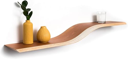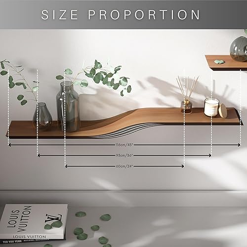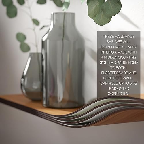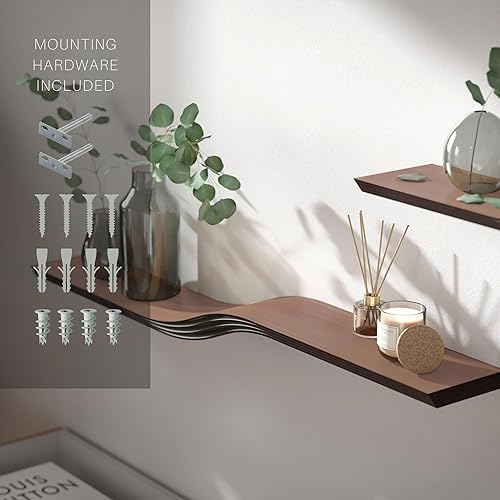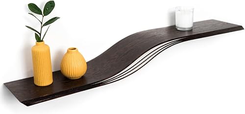 EWART WOODS Étagère murale flottante incurvée en bois à suspendre géométrique, étagère moderne en bois, meubles faits à la main (wengé, 95 cm)