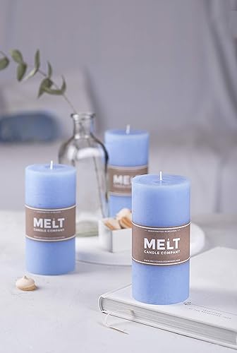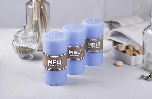 Melt Candle Company Lot de 3 Blanc 7,5 x 15 cm Bougies piliers Non parfuméespour Mariages, Restaurants, décoration de Maison, Spa, église, mèche en Coton Qui ne Fume Pas