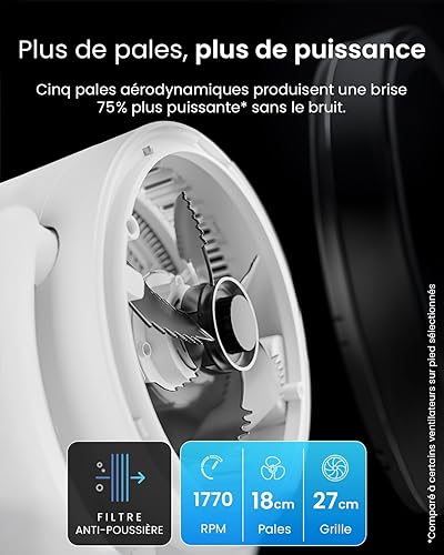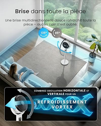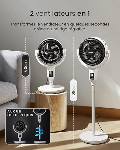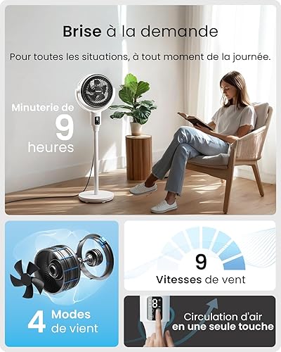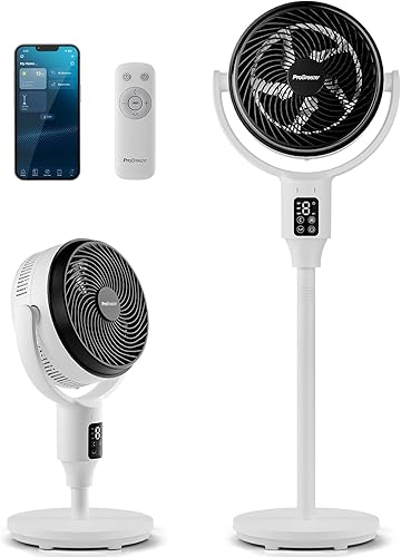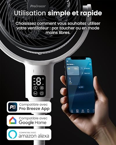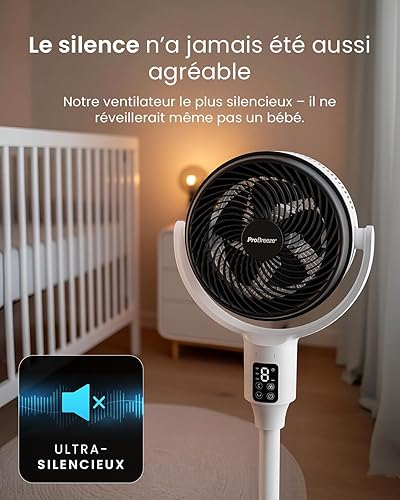 Pro Breeze Ventilateur sur Pied Hybride 109 cm Silencieux 29 dB avec Télécommande, Oscillation 135°/100°, 9 Vitesses, Écran LED, Minuterie 9h – Éco-énergétique, Idéal Pour Chambre, Salon, Bureau