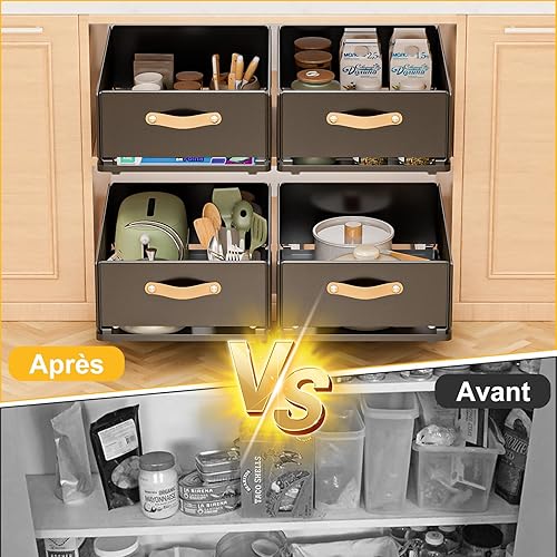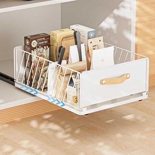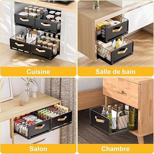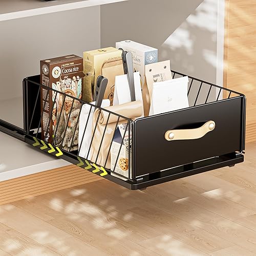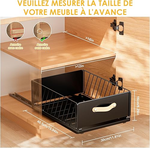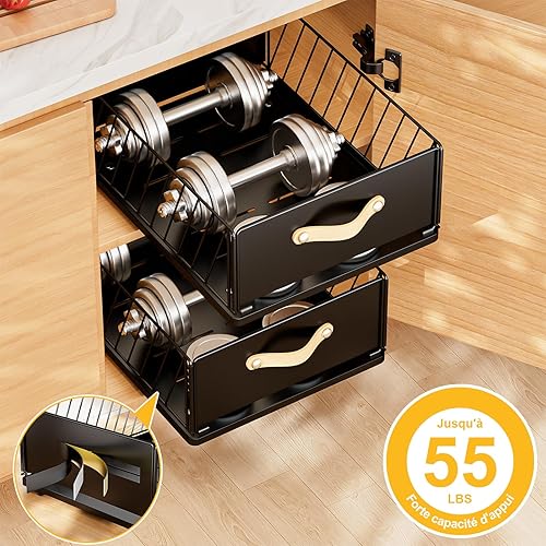 Carastek Tiroir Coulissant Cuisine Organiseurs de Tiroirs de Cuisine Organiseur D'armoire Coulissant Fixé Bac Coulissant Placard Cuisine Aucun Perç Age ni Clouage Requis 30 L*41 l*16 H cm (Noir)