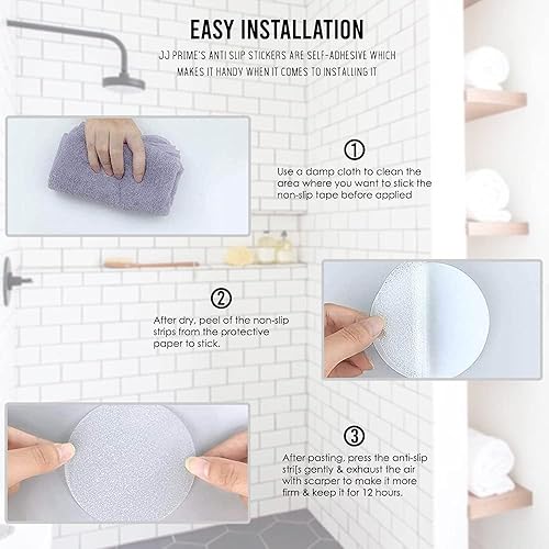 JJ PRIME - 28PCS Anti-dérapant Transparent Adhésive Autocollant pour Salle de Bain Sol, Baignoire, Cuisine, avec Plastique Gratuit Grattoir, Une Meilleure Adhérence pour Plus de Sécurité (Ronde)