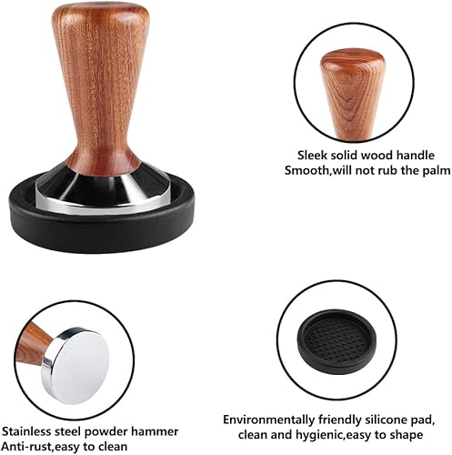 Gvolatee Tamper à Café, Espresso Tamper, Tasseur Presse en INOX avec Coussin Silicone, Set de Tampons Design