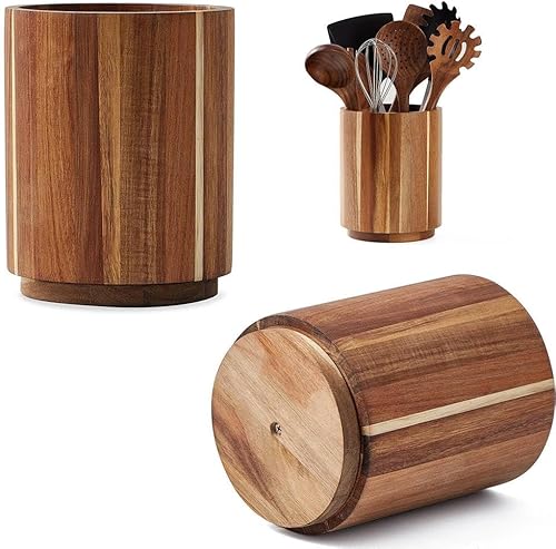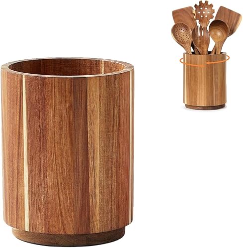 Générique Porte-ustensiles en Bois d'acacia avec Rotation à 360°, Pot antidérapant de Grande capacité pour comptoir de Cuisine, Pot à ustensiles de Cuisine en Bois de 18,3 cm pour comptoir