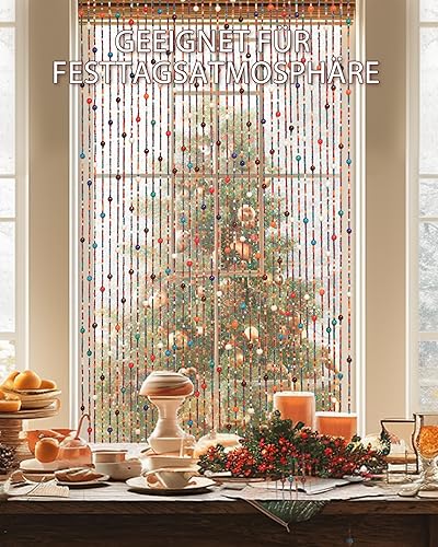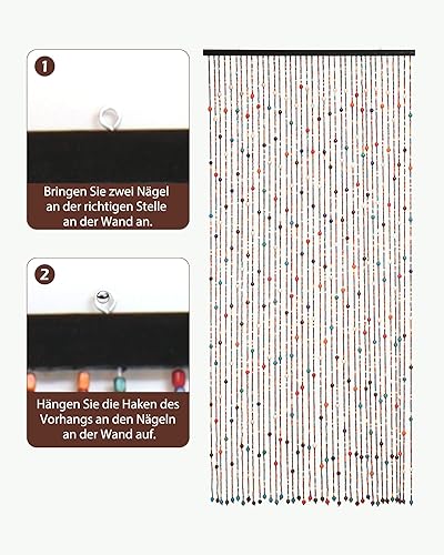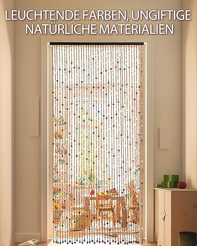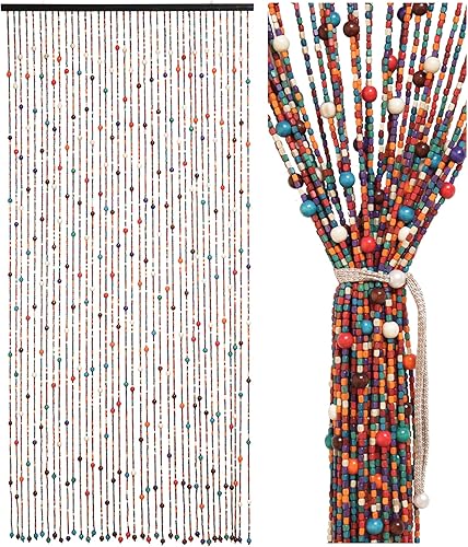Ezcasch 90 x 200 cm - Rideau de porte - Décoration et moustiquaire - 38 brins - Style bohème - En bambou et perles en bois - Pour fenêtre et chambre - Multicolore - Arc-en-ciel