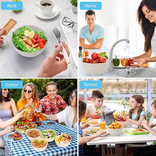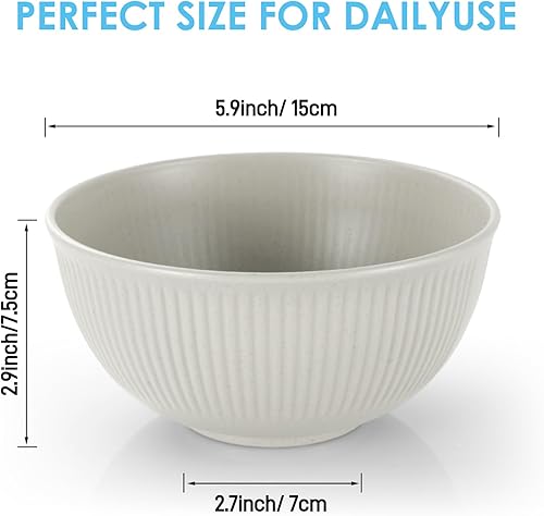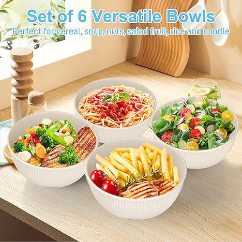 Esilihom Lot de 6 bols à céréales incassables en plastique léger et réutilisables pour fêtes, pique-niques, camping, petit déjeuner, salade, pâtes, soupe, nouilles, collation (beige)