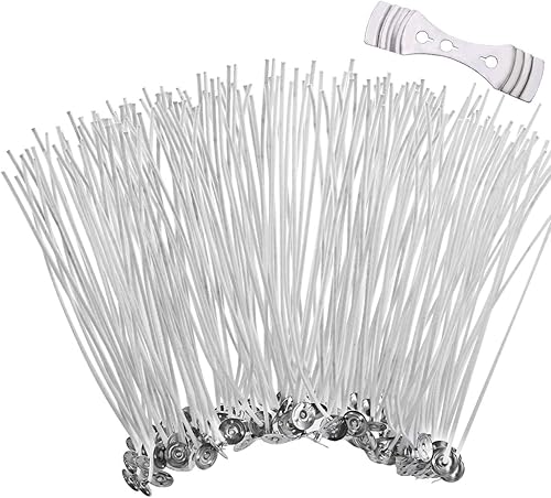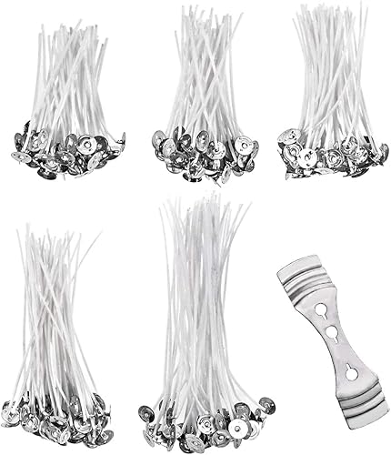 Nabance Mèche Bougie 250 PCS Mèche de Bougie Naturelle Coton 100% Mèches Pré Ciré Mèches de Bougie Acier Inoxydable Support Mèche pour la Fabrication de Bougies (80mm 90 mm 100 mm 120 mm 150 mm)