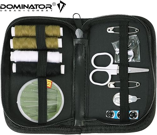 Kit de couture Dominator Urban Combat pour activités de plein air, urgences et voyages, avec fil, aiguilles, épingles à nourrice, ciseaux et broche, dans une housse en nylon robuste