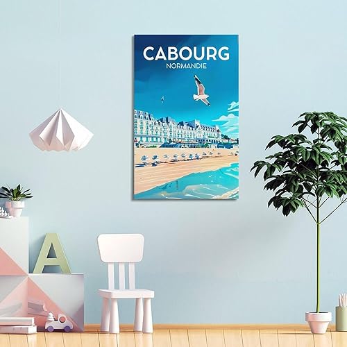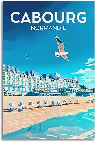 JJUPUV Cabourg Normandie Poster de voyage vintage sur toile Décoration murale Décoration moderne 20 x 30 cm
