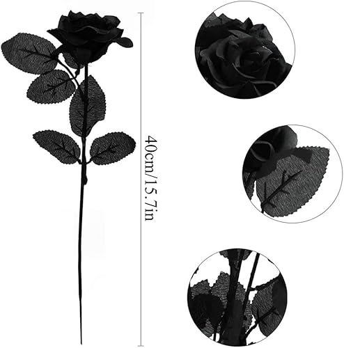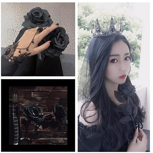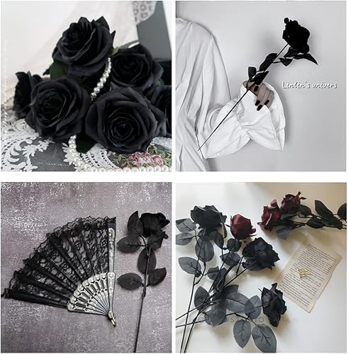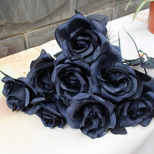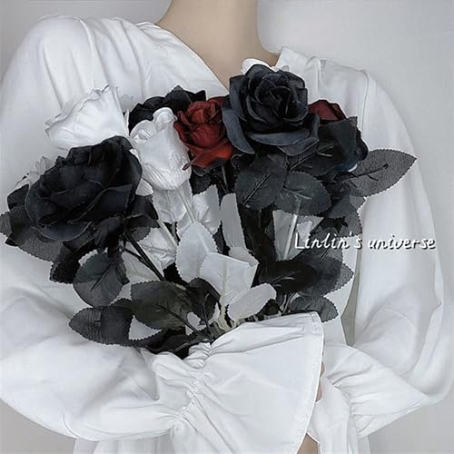 NatureMan Lot de 10 roses artificielles noires à tige unique en soie réaliste pour décoration de fête, bouquet de mariage, décoration d'Halloween (rouge vin)